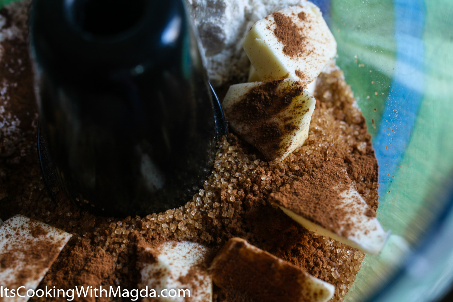 If using a food processor it, is important not to over do it, otherwise you would end up with a big chunk of dough instead of nice, small crumbles. Turn the food processor on and let it work for about 5-7 seconds, then watching it closely, pulse it 4-5 times for about 3-4 seconds. Don’t over do it!