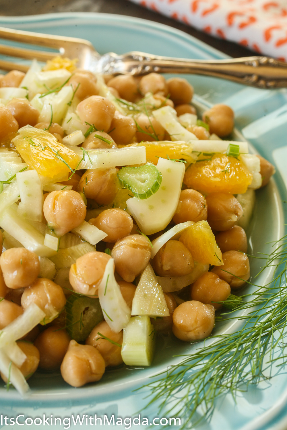 This salad is a bit fancier version of the salad mentioned above but still very simple and easy to make. In addition to the chickpeas it combines fennel with its sweet anise-like flavor, juicy orange, tart lemon and a light dressing with a hint of garlic. After you combine all of the ingredients, let it sit for 10-15 minutes so the flavors can blend.